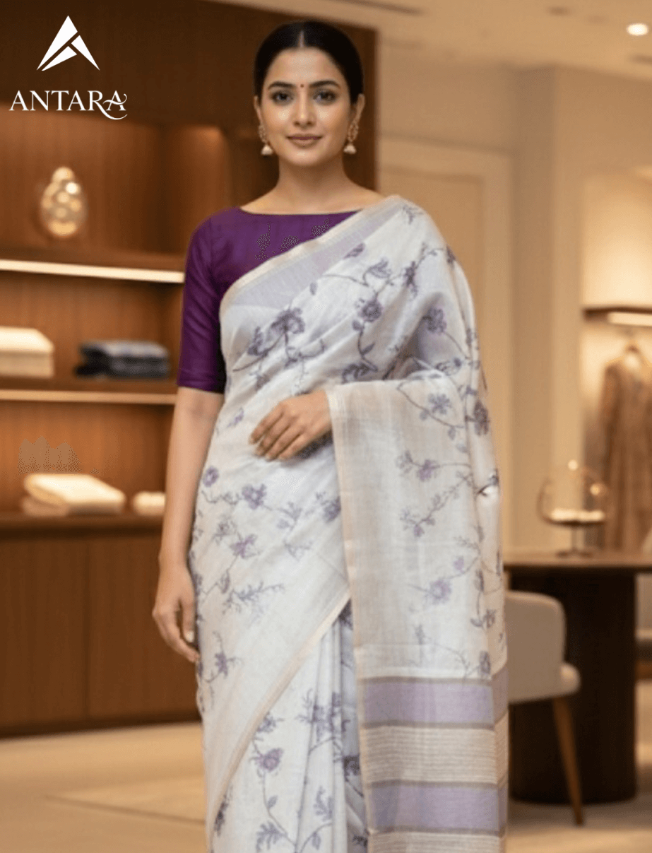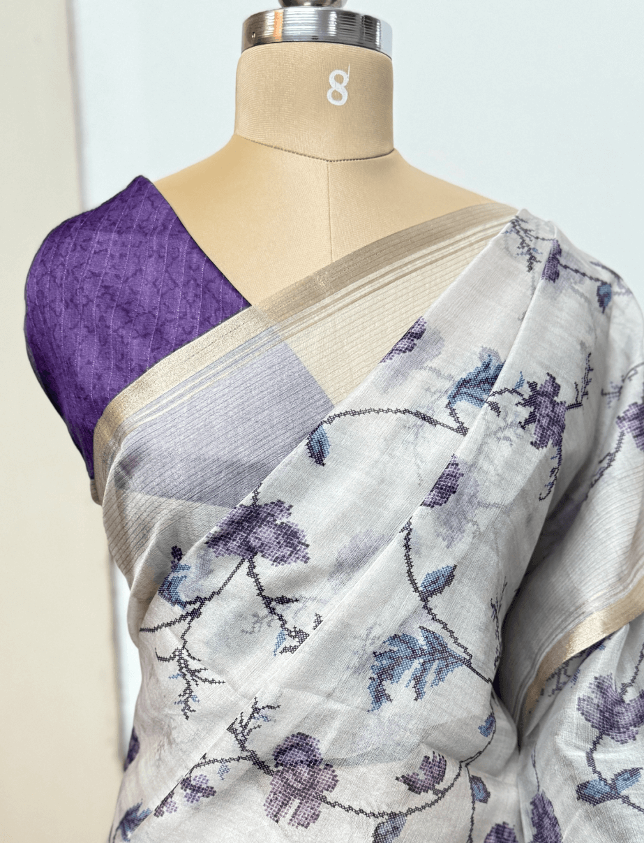 Lavender Fancy Pixel Saree with Zari Border