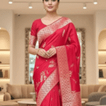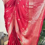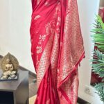 Be the first to review “Red Katan Saree Peacock motif”