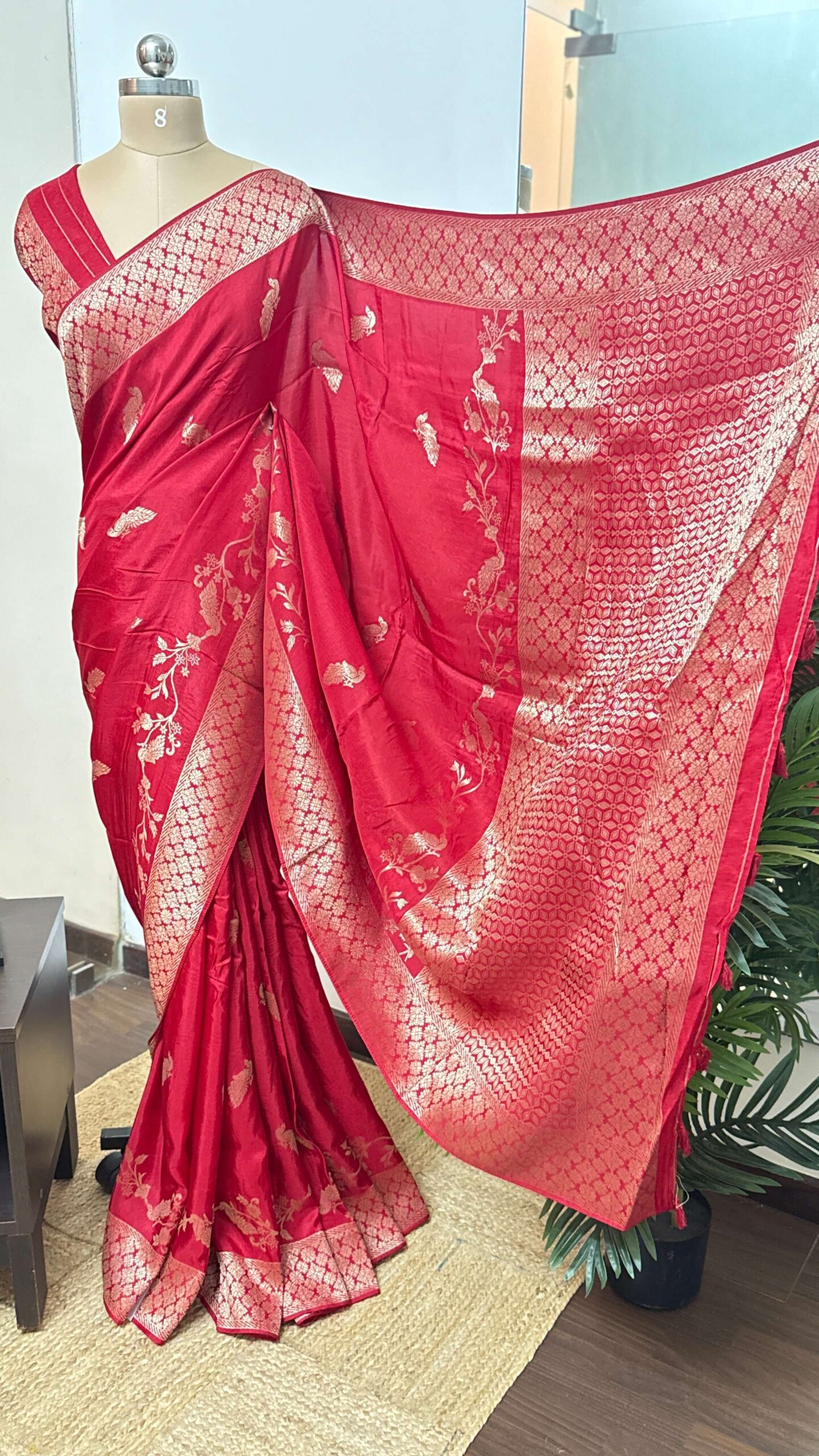 Red Katan Saree Peacock motif