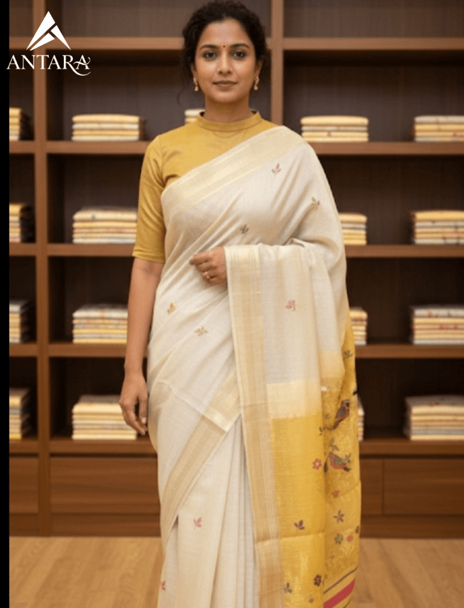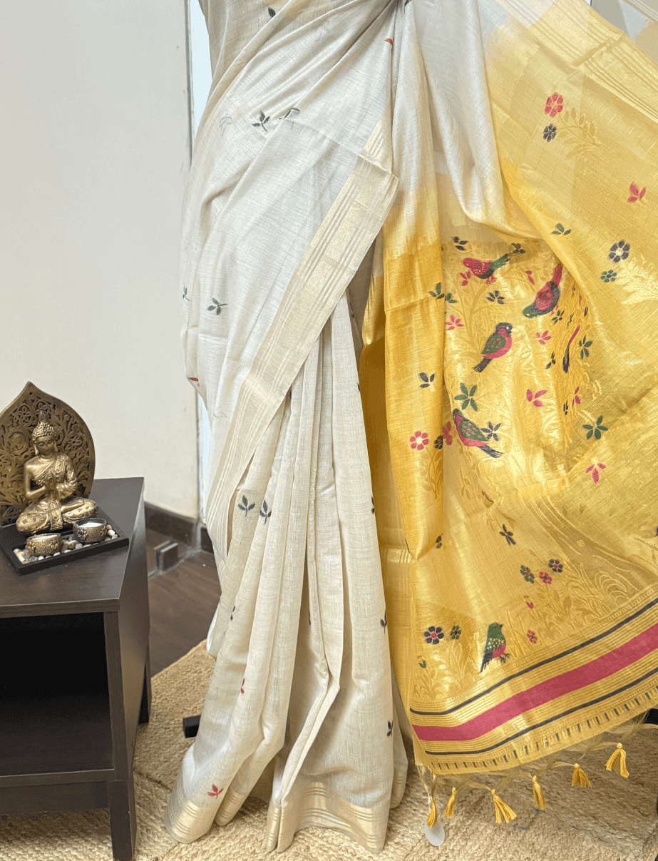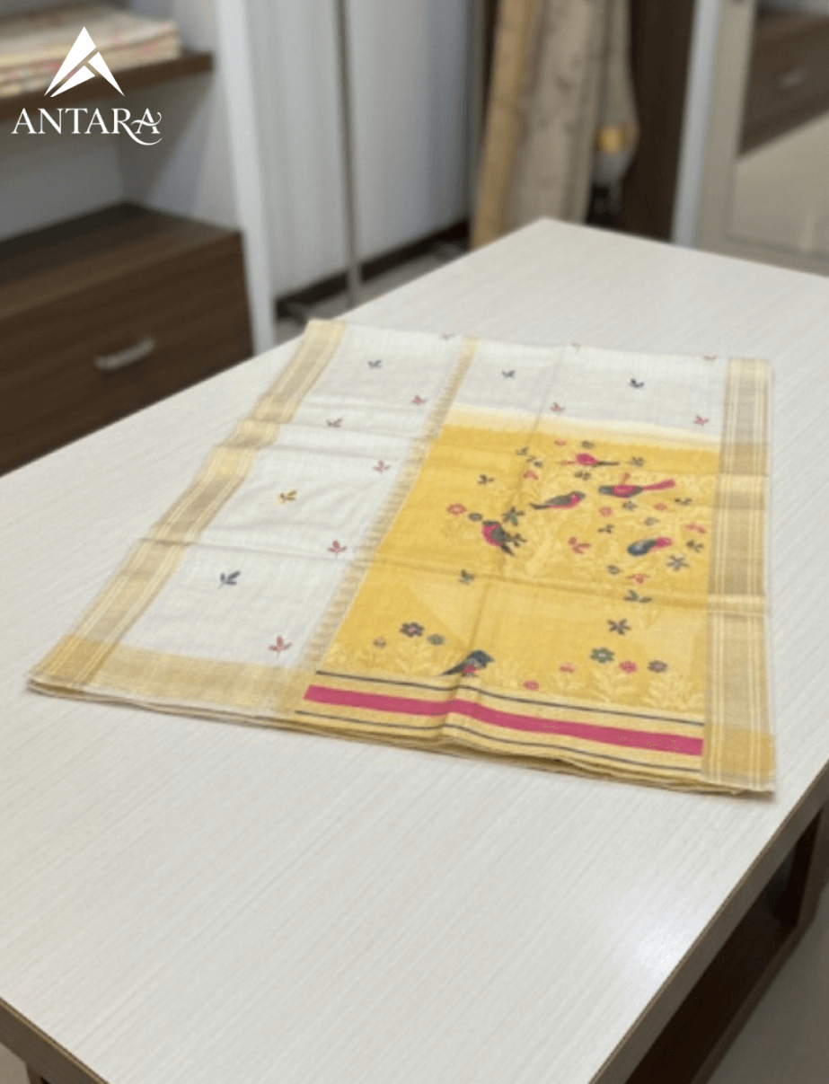 Be the first to review “Yellow and white fancy cotton Patola Saree”